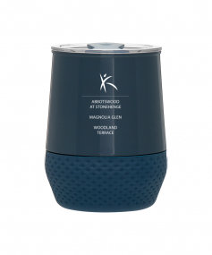 12 oz double wall 18/8 stainless steel thermal tumbler with copper vacuum insulation, push-on lid, matching swivel closure, and removable silicone base.