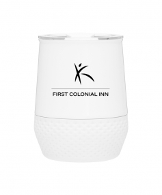 12 oz double wall 18/8 stainless steel thermal tumbler with copper vacuum insulation, push-on lid, matching swivel closure, and removable silicone base.
