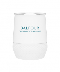 12 oz double wall 18/8 stainless steel thermal tumbler with copper vacuum insulation, push-on lid, matching swivel closure, and removable silicone base.