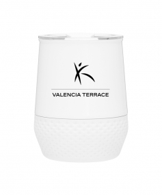 12 oz double wall 18/8 stainless steel thermal tumbler with copper vacuum insulation, push-on lid, matching swivel closure, and removable silicone base.