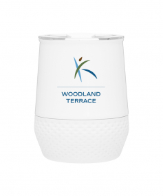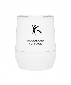 12 oz double wall 18/8 stainless steel thermal tumbler with copper vacuum insulation, push-on lid, matching swivel closure, and removable silicone base.