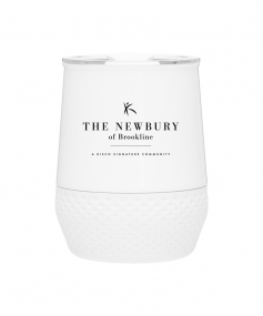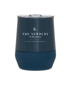 12 oz double wall 18/8 stainless steel thermal tumbler with copper vacuum insulation, push-on lid, matching swivel closure, and removable silicone base.
