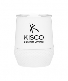 12 oz double wall 18/8 stainless steel thermal tumbler with copper vacuum insulation, push-on lid, matching swivel closure, and removable silicone base.