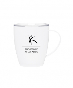 12 oz double wall 18/8 stainless steel thermal mug with copper vacuum insulation, clear acrylic push-on lid, and matching swivel; Hand wash recommended; Do not microwave; 4-7/16" h x 4"w (4-7/8 with handle) ; 355mL.