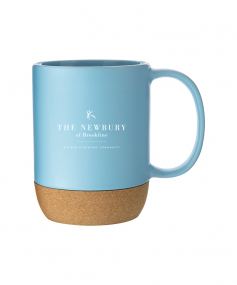 13 oz stoneware: matte color out / gloss color in with cork baseHand wash recommended. Do not microwave. Complies with FDA, Prop 65. 4.625" H x 5" W