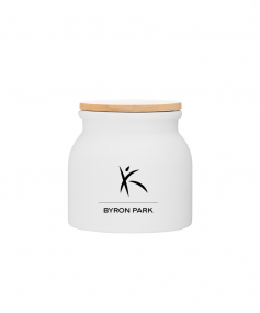 16.9 oz stoneware: matte white out / glossy white in with push-on bamboo lid; Hand wash recommended; Microwave safe with non-metallic imprint; 4 3/16 h x 4 3/16 (w/handle) w ; 500mL.