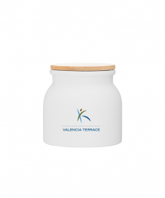 16.9 oz stoneware: matte white out / glossy white in with push-on bamboo lid; Hand wash recommended; Microwave safe with non-metallic imprint; 4 3/16 h x 4 3/16 (w/handle) w ; 500mL.