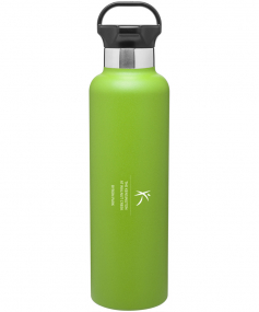 24 oz powder coated double wall 18/8 stainless steel thermal bottle with copper vacuum insulation, threaded gear-shaped insulated lid and carrying handle Complies with FDA, Prop 65. 11.25" H x 3" W