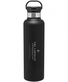 24 oz powder coated double wall 18/8 stainless steel thermal bottle with copper vacuum insulation, threaded gear-shaped insulated lid and carrying handle Complies with FDA, Prop 65. 11.25" H x 3" W