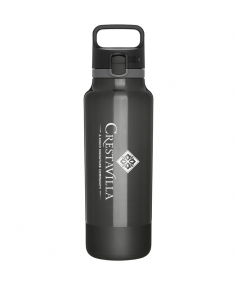 25 oz double wall 18/8 stainless steel thermal bottle with copper vacuum insulation, threaded one-touch push-button lid, locking mechanism, carrying handle, and rubberized base - patent pending - gift box included; Hand wash recommended; Do not microwave; 11 h x 3 w ; 739mL.