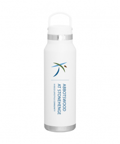 25 oz double wall 18/8 stainless steel thermal bottle with copper vacuum insulation, threaded insulated lid with carrying handle, high polish accent, stainless steel base, and powder coated finish. Hand wash recommended; Do not microwave. Dimensions: 10 H x 3".