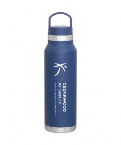 25 oz double wall 18/8 stainless steel thermal bottle with copper vacuum insulation, threaded insulated lid with carrying handle, high polish accent, stainless steel base, and powder coated finish. Hand wash recommended; Do not microwave. Dimensions: 10 H x 3".
