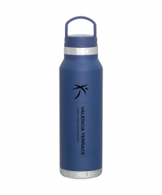 25 oz double wall 18/8 stainless steel thermal bottle with copper vacuum insulation, threaded insulated lid with carrying handle, high polish accent, stainless steel base, and powder coated finish. Hand wash recommended; Do not microwave. Dimensions: 10 H x 3".