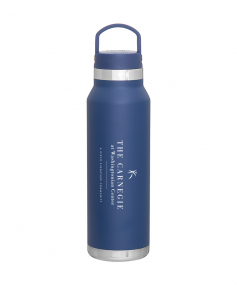 25 oz double wall 18/8 stainless steel thermal bottle with copper vacuum insulation, threaded insulated lid with carrying handle, high polish accent, stainless steel base, and powder coated finish. Hand wash recommended; Do not microwave. Dimensions: 10 H x 3".