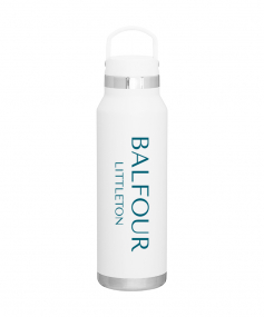 25 oz double wall 18/8 stainless steel thermal bottle with copper vacuum insulation, threaded insulated lid with carrying handle, high polish accent, stainless steel base, and powder coated finish. Hand wash recommended; Do not microwave. Dimensions: 10 H x 3".