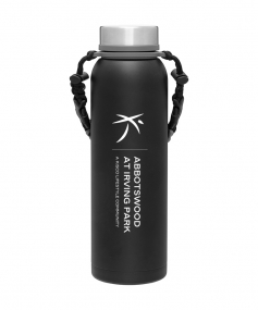 32 oz double wall 18/8 stainless steel thermal bottle with copper vacuum insulation, insulated stainless steel threaded lid, silicone ring, removable strap with buckles, removable clasps, and powder coated finish. Individual gift box. Hand wash recommended. Do not microwave. Complies with FDA, Prop 65. 11" H x 3.1875" W