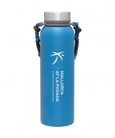 32 oz double wall 18/8 stainless steel thermal bottle with copper vacuum insulation, insulated stainless steel threaded lid, silicone ring, removable strap with buckles, removable clasps, and powder coated finish. Individual gift box. Hand wash recommended. Do not microwave. Complies with FDA, Prop 65. 11" H x 3.1875" W