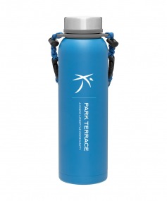 32 oz double wall 18/8 stainless steel thermal bottle with copper vacuum insulation, insulated stainless steel threaded lid, silicone ring, removable strap with buckles, removable clasps, and powder coated finish. Individual gift box. Hand wash recommended. Do not microwave. Complies with FDA, Prop 65. 11" H x 3.1875" W