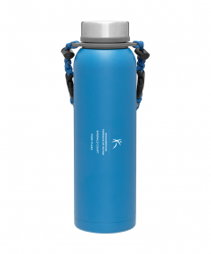 32 oz double wall 18/8 stainless steel thermal bottle with copper vacuum insulation, insulated stainless steel threaded lid, silicone ring, removable strap with buckles, removable clasps, and powder coated finish. Individual gift box. Hand wash recommended. Do not microwave. Complies with FDA, Prop 65. 11" H x 3.1875" W