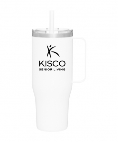 40 oz double wall 18/8 stainless steel thermal mug with copper vacuum insulation, stainless steel rim, dual-purpose push-on clear lid, matching sliding closure, flexible wide silicone straw, and powder coated finish. Individual gift box. Hand wash recommended. Do not microwave. Complies with FDA, Prop 65. 9.75" H x 4" W