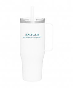40 oz double wall 18/8 stainless steel thermal mug with copper vacuum insulation, stainless steel rim, dual-purpose push-on clear lid, matching sliding closure, flexible wide silicone straw, and powder coated finish. Individual gift box. Hand wash recommended. Do not microwave. Complies with FDA, Prop 65. 9.75" H x 4" W