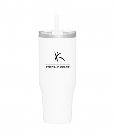40 oz double wall 18/8 stainless steel thermal tumbler with copper vacuum insulation, stainless steel rim, dual-purpose push-on clear lid, matching sliding closure, flexible wide silicone straw, and powder coated finish