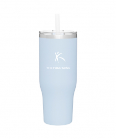 40 oz double wall 18/8 stainless steel thermal tumbler with copper vacuum insulation, stainless steel rim, dual-purpose push-on clear lid, matching sliding closure, flexible wide silicone straw, and powder coated finish