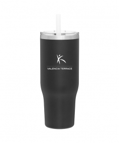 40 oz double wall 18/8 stainless steel thermal tumbler with copper vacuum insulation, stainless steel rim, dual-purpose push-on clear lid, matching sliding closure, flexible wide silicone straw, and powder coated finish