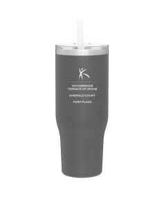 40 oz double wall 18/8 stainless steel thermal tumbler with copper vacuum insulation, stainless steel rim, dual-purpose push-on clear lid, matching sliding closure, flexible wide silicone straw, and powder coated finish