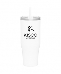 40 oz double wall 18/8 stainless steel thermal tumbler with copper vacuum insulation, stainless steel rim, dual-purpose push-on clear lid, matching sliding closure, flexible wide silicone straw, and powder coated finish