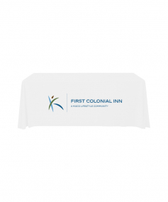 6' Standard PolyPoplin Throw style table cover with one color logo. Designed for quick and easy use while looking great. All corners are rounded meaning they will not gather and lay on the floor. Floor length on all 4 sides. Made from woven polyester. 72" L x 30" D x 29" H