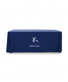 6' Standard PolyPoplin Throw style table cover with one color logo. Designed for quick and easy use while looking great. All corners are rounded meaning they will not gather and lay on the floor. Floor length on all 4 sides. Made from woven polyester. 72" L x 30" D x 29" H