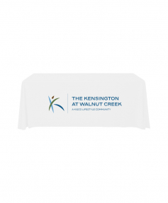 6' Standard PolyPoplin Throw style table cover with one color logo. Designed for quick and easy use while looking great. All corners are rounded meaning they will not gather and lay on the floor. Floor length on all 4 sides. Made from woven polyester. 72" L x 30" D x 29" H