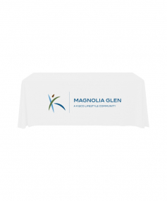 6' Standard PolyPoplin Throw style table cover with one color logo. Designed for quick and easy use while looking great. All corners are rounded meaning they will not gather and lay on the floor. Floor length on all 4 sides. Made from woven polyester. 72" L x 30" D x 29" H