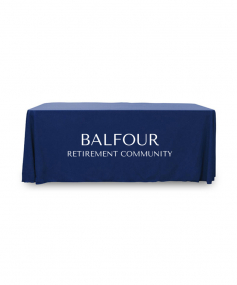 6' Standard PolyPoplin Throw style table cover with one color logo. Designed for quick and easy use while looking great. All corners are rounded meaning they will not gather and lay on the floor. Floor length on all 4 sides. Made from woven polyester. 72" L x 30" D x 29" H
