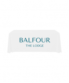 6' Standard PolyPoplin Throw style table cover with one color logo. Designed for quick and easy use while looking great. All corners are rounded meaning they will not gather and lay on the floor. Floor length on all 4 sides. Made from woven polyester. 72" L x 30" D x 29" H