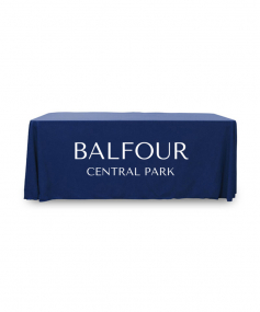 6' Standard PolyPoplin Throw style table cover with one color logo. Designed for quick and easy use while looking great. All corners are rounded meaning they will not gather and lay on the floor. Floor length on all 4 sides. Made from woven polyester. 72" L x 30" D x 29" H