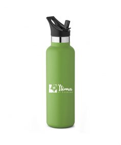 20 oz. Narrow-mouth vacuum-insulated bottle. Features a flip-top straw lid with ergonomic top finger loop. Keeps contents cold for 24 hours. Powder coat finish with copper lining, double wall 18/8 stainless steel, proprietary BPA-free insulated lid. Bottle comes with both screw-on lid and straw lid. 11" H x 2 7/8" Diameter.