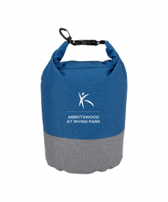 Keeps your items dry and comes in a chic two-tone design. It has a roll top closure with a buckle to connect to other bags and a carabiner clip to connect to a backpack or tether to a raft rope. Made from heathered 300D polyester, it has a 5 liter capacity and can float if dropped in water. Complies with Prop 65. 7" W x 13" H x 7" D