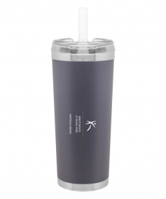 24 oz double wall 18/8 stainless steel thermal tumbler with copper vacuum insulation, stainless steel rim and base, threaded Eastman Tritan lid, snap closure, straw opening, and flexible wide silicone straw.