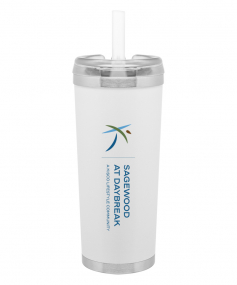 24 oz double wall 18/8 stainless steel thermal tumbler with copper vacuum insulation, stainless steel rim and base, threaded Eastman Tritan lid, snap closure, straw opening, and flexible wide silicone straw.