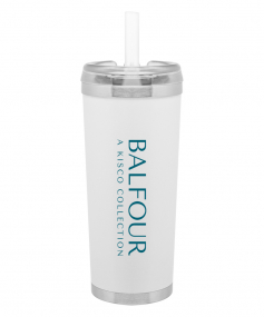 24 oz double wall 18/8 stainless steel thermal tumbler with copper vacuum insulation, stainless steel rim and base, threaded Eastman Tritan lid, snap closure, straw opening, and flexible wide silicone straw.