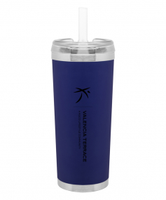 24 oz double wall 18/8 stainless steel thermal tumbler with copper vacuum insulation, stainless steel rim and base, threaded Eastman Tritan lid, snap closure, straw opening, and flexible wide silicone straw.