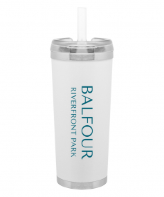 24 oz double wall 18/8 stainless steel thermal tumbler with copper vacuum insulation, stainless steel rim and base, threaded Eastman Tritan lid, snap closure, straw opening, and flexible wide silicone straw.