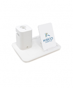 The 3-in-1 charging dock. Tired of fumbling with messy wires and unsafe charging cords? The Docksy is your three-in-one charging solution. Ideal for a nightstand or counter, the Docksy allows you to recharge each of your smart devices at once! 6" W x 8" L x 4.3" H
