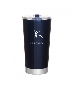 20 oz double wall 18/8 stainless steel thermal tumbler with vacuum insulation, and clear acrylic push-on swivel lid. Hand wash recommended. Do not microwave. Complies with FDA, Prop 65. 7.125" H x 3.75" W