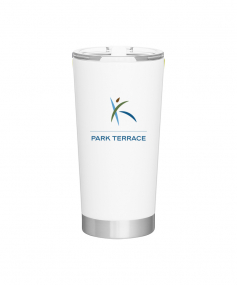 20 oz double wall 18/8 stainless steel thermal tumbler with vacuum insulation, and clear acrylic push-on swivel lid. Hand wash recommended. Do not microwave. Complies with FDA, Prop 65. 7.125" H x 3.75" W