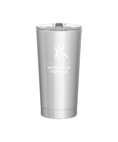 20 oz double wall 18/8 stainless steel thermal tumbler with vacuum insulation, and clear acrylic push-on swivel lid. Hand wash recommended. Do not microwave. Complies with FDA, Prop 65. 7.125" H x 3.75" W