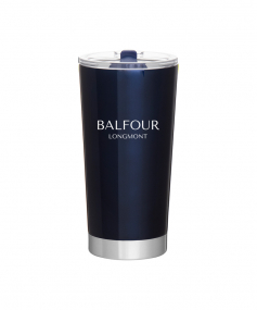 20 oz double wall 18/8 stainless steel thermal tumbler with vacuum insulation, and clear acrylic push-on swivel lid. Hand wash recommended. Do not microwave. Complies with FDA, Prop 65. 7.125" H x 3.75" W