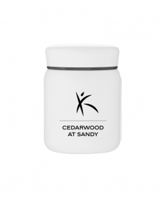 16.9 oz double wall 18/8 stainless steel thermal food container with copper vacuum insulation, matching threaded lid, threaded insulated lid, and rubber bottom. Individual gift box. Hand wash recommended. Do not microwave. Complies with FDA, Prop 65. 5.25" H x 3.875" W